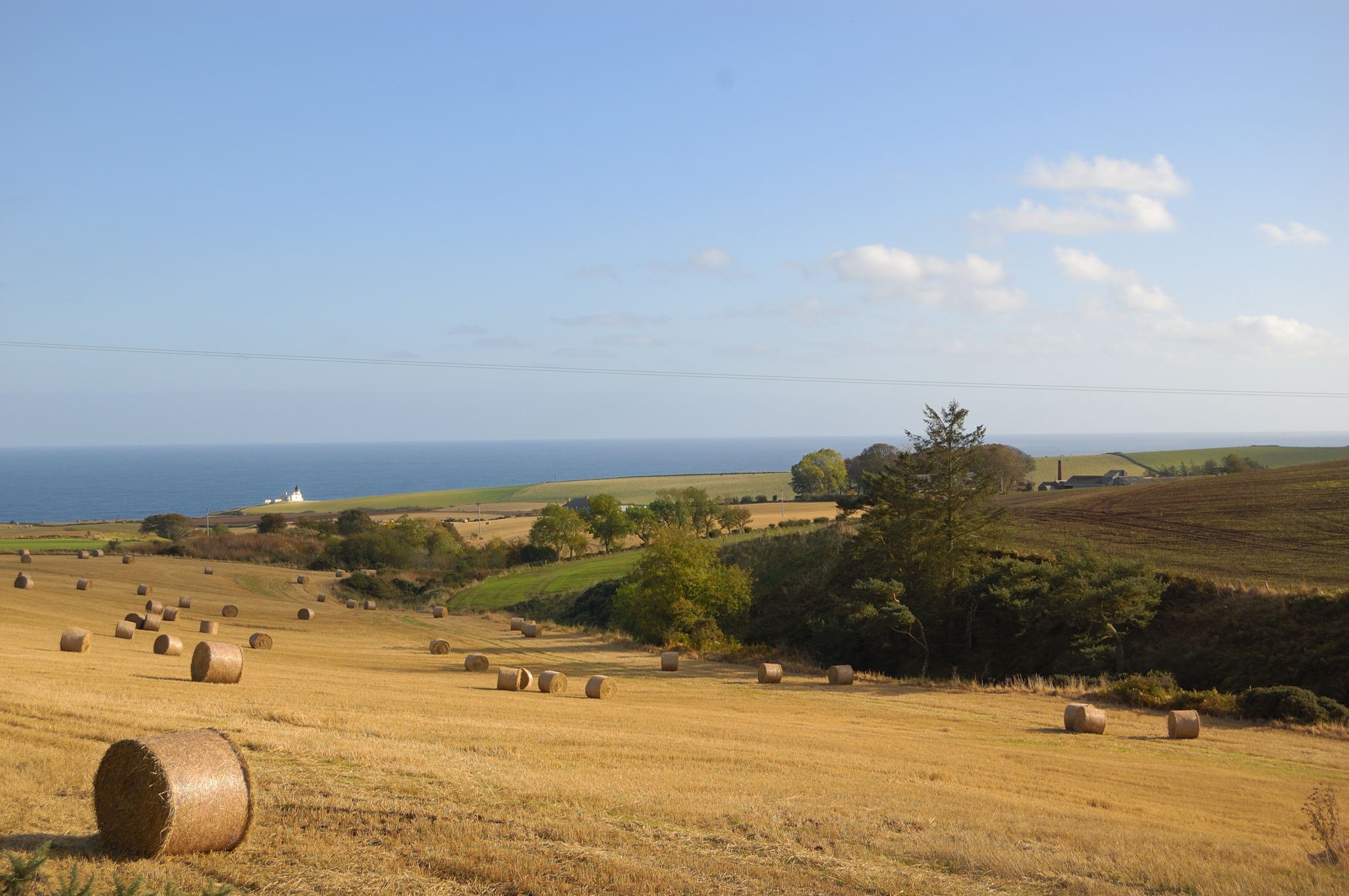 A hay field facing the sea near Findhorn. Autumn in Scotland.